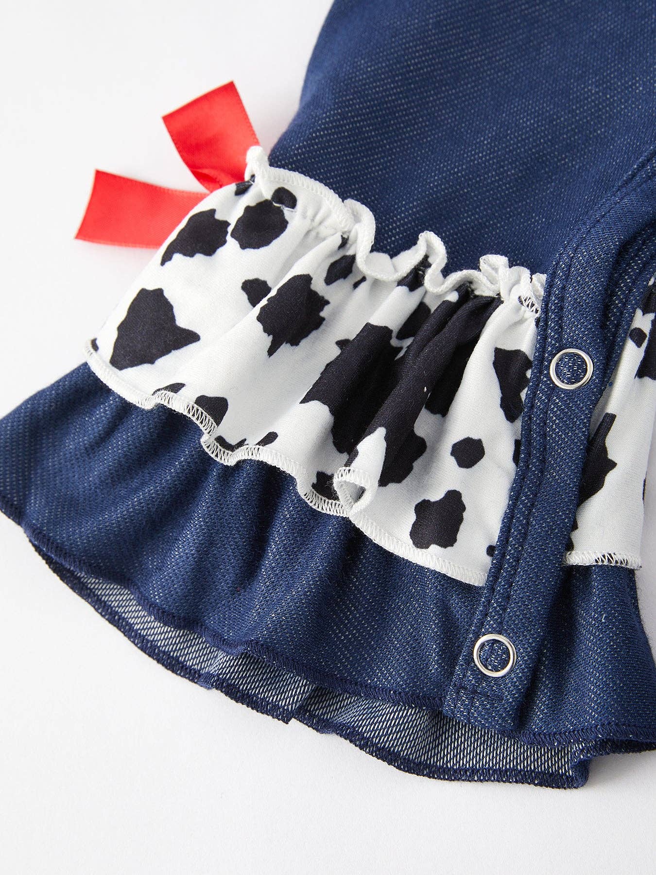 Unleash the cuteness in your little one with our Girls Cow Applique Embroidered Romper! Hand-made with love, this romper features a charming cow applique and delicate embroidery details. Your little fashionista will love the soft fabric and comfortable fit, while you'll love the unique and adorable style. Perfect for playdates, family outings, and more!